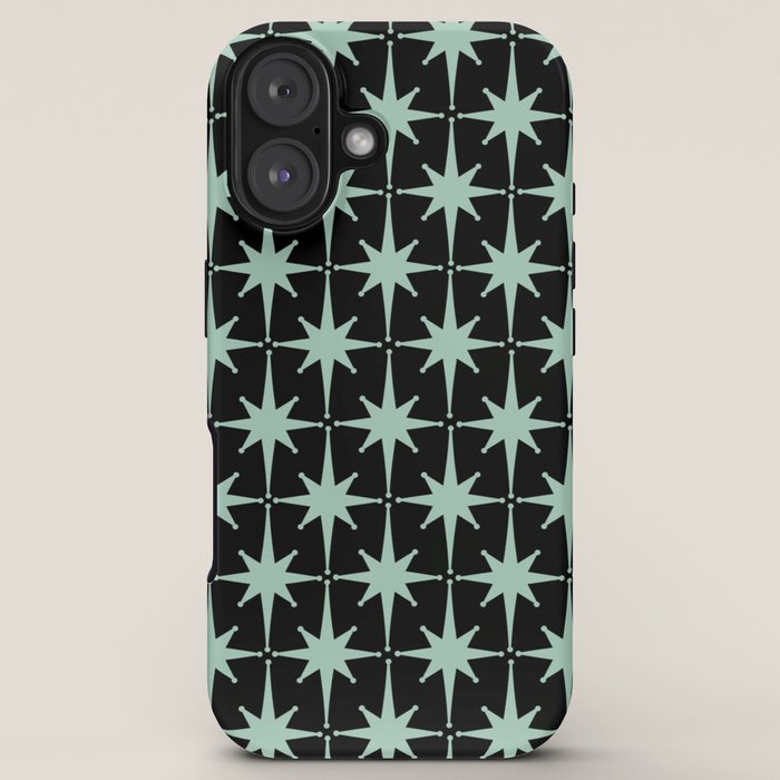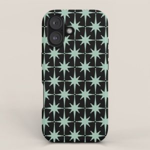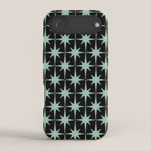 Be the first to review “Atomic Age 1950s Retro Starburst Pattern in Mid-Century Modern Mint and Black iPhone Case”