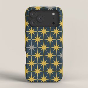 Be the first to review “Atomic Age Retro Midcentury 1950s Starburst Pattern in Light Mustard, Gray, and Navy Blue iPhone Case”