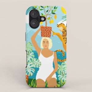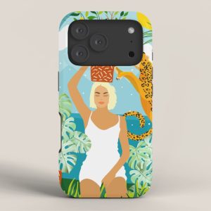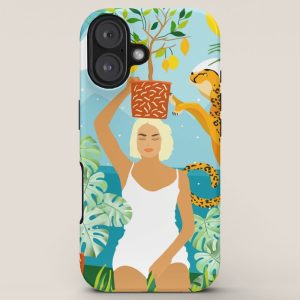 Be the first to review “Bring The Jungle Home Illustration, Tropical Cheetah Wild Cat & Woman Painting iPhone Case”