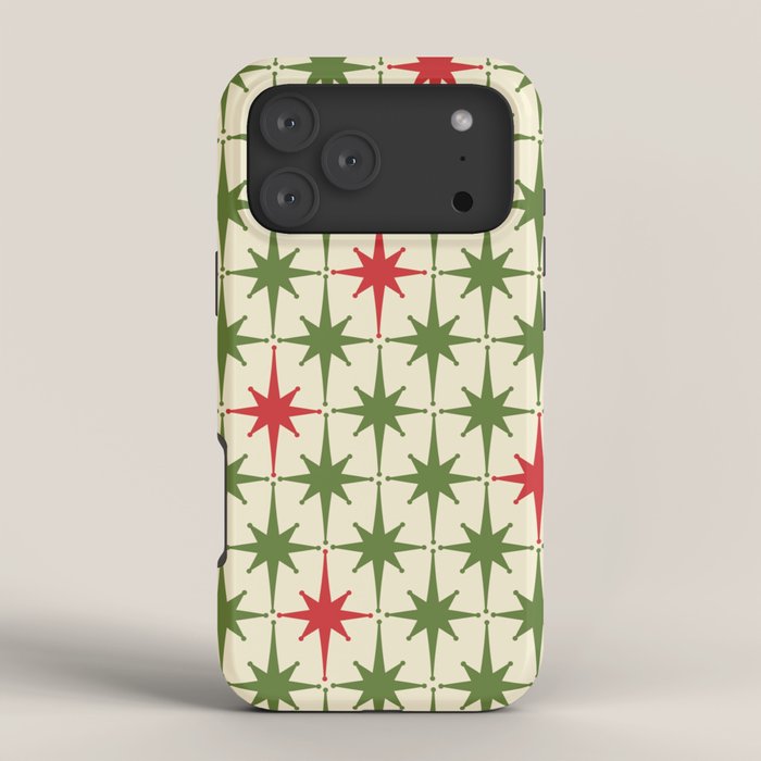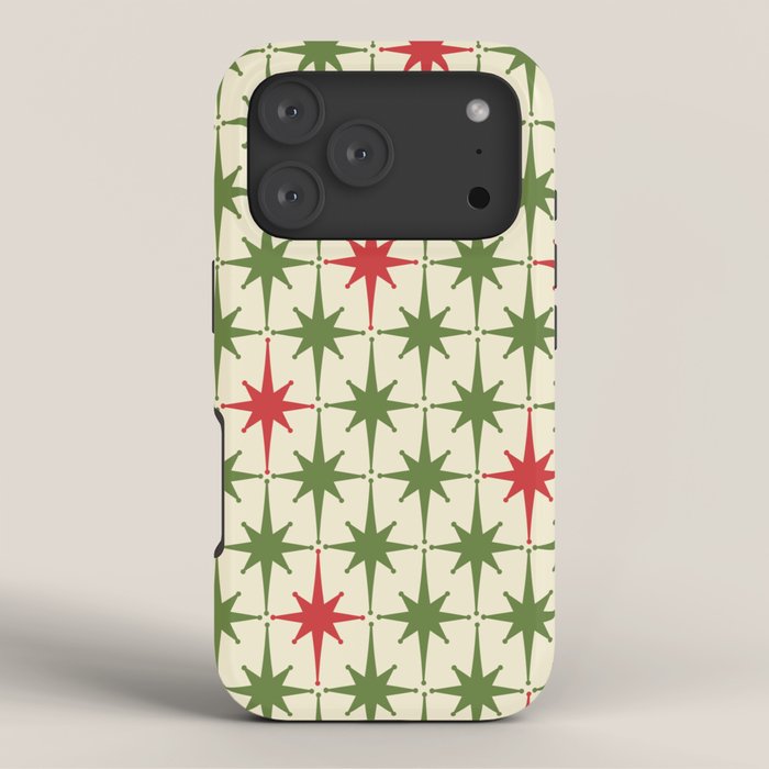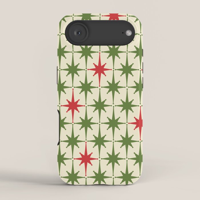 Be the first to review “Christmas Starbursts – Atomic Age Xmas Holiday Pattern in Red and Retro Green on Cream iPhone Case”