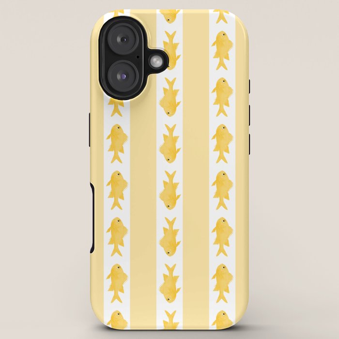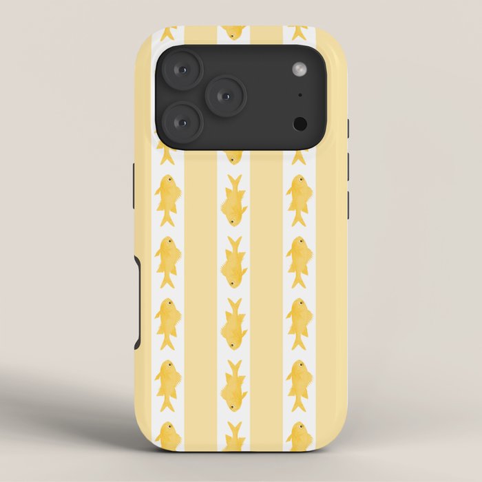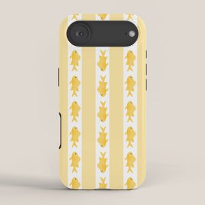 Be the first to review “Coastal Fish Stripes Contemporary Cottage Pattern in Pastel Yellow and White iPhone Case”