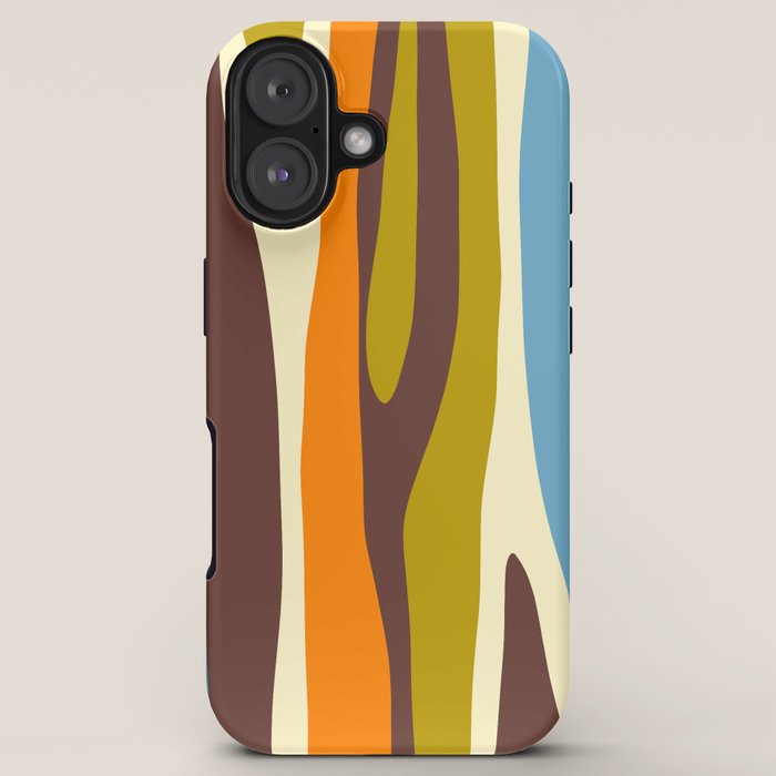 Be the first to review “Eclectic Abstract Wild Stripes Retro Contemporary Pattern in Avocado Brown Orange Blue iPhone Case”