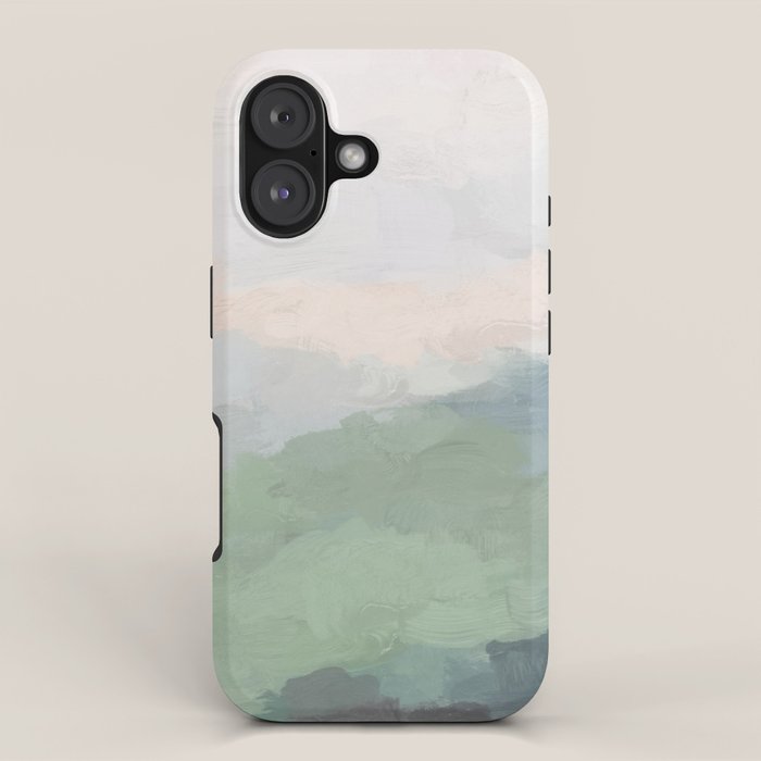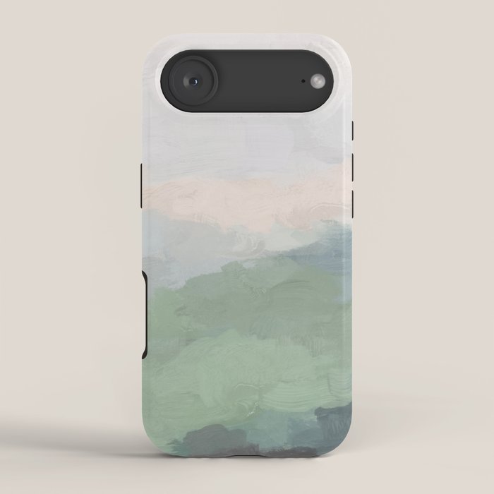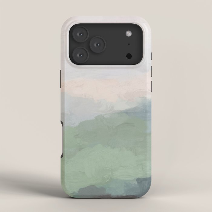 Be the first to review “Farmland Sunset III – Seafoam Green Mint Black Blush Pink Abstract Nature Land Art Painting iPhone Case”