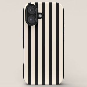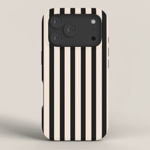 Be the first to review “Fine Stripes Vertical Minimalist Pattern in Black and Almond Cream iPhone Case”