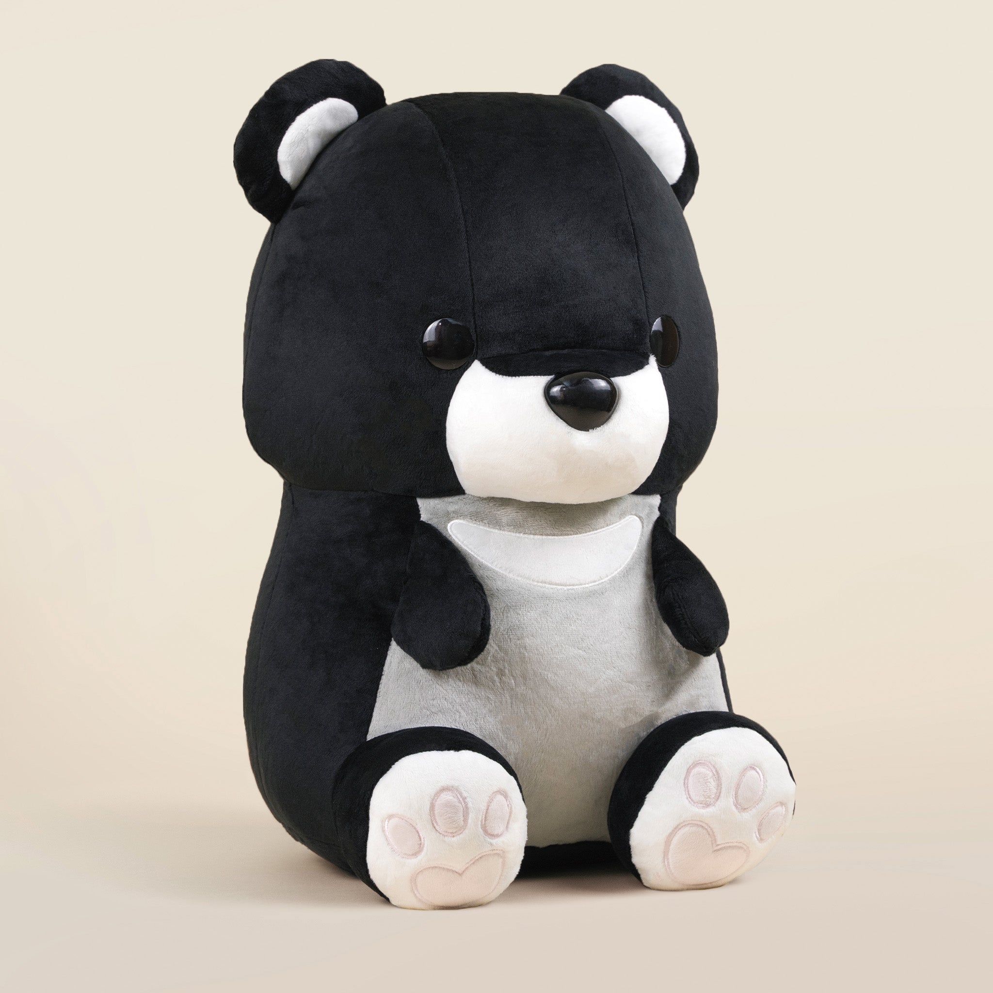 Immerse yourself in the embrace of Jumbo Moonbi’s premium quality materials, which boast an extravagantly soft and huggable exterior, rivaling the fluffiest clouds in the sky. Its velvety fur captures the essence of the Asian black bear, complemented by ethereal white accents that adorn its majestic form.