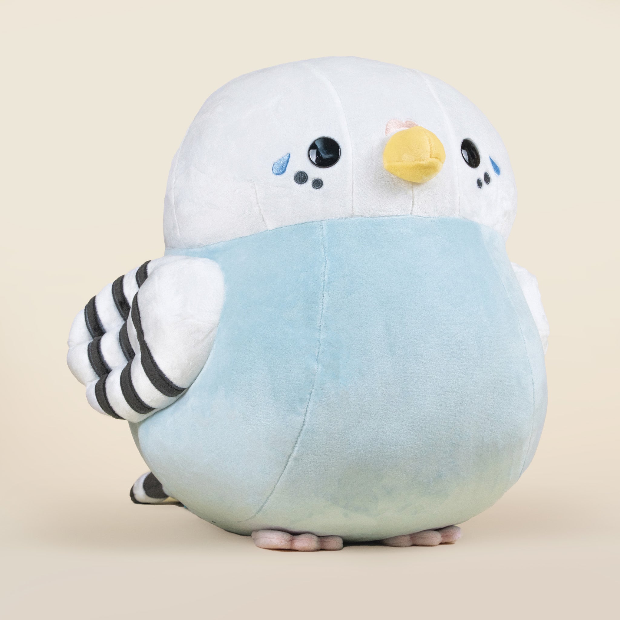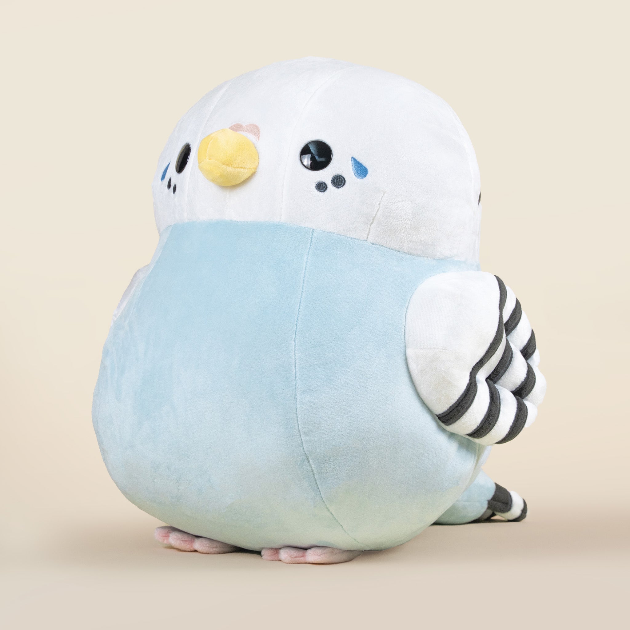 Introducing Giant Paraki, the Parakeet plushie, soaring into your heart with a wing-load of vibrant charm and feathers of cuddly delight! This enchanting plushie brings the brilliance of blue parakeet cheerfulness and avian coziness to your plush collection.
