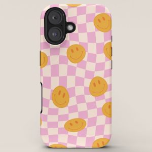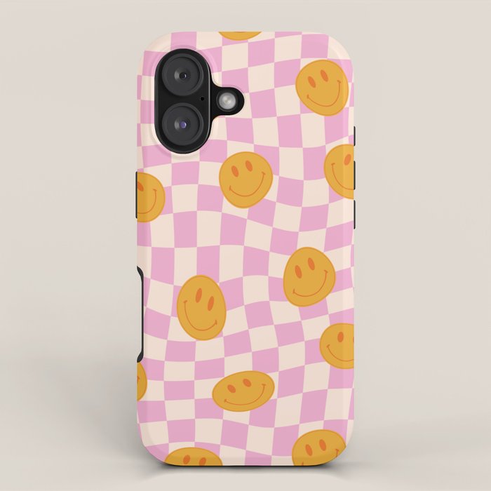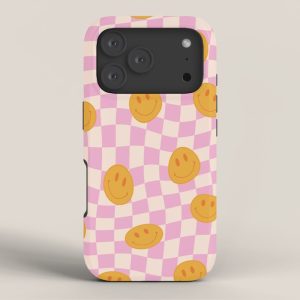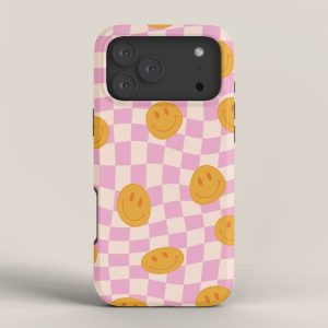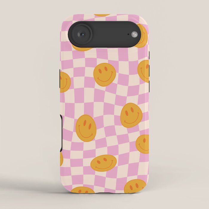 Be the first to review “Groovy Smiley Faces on Pastel Pink Twisted Checkerboard iPhone Case”