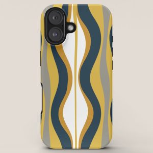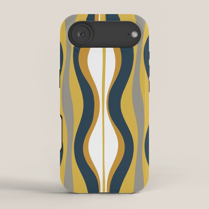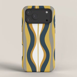 Be the first to review “Hourglass Abstract Mid Century Modern Retro Pattern in Mustard Yellow, Navy Blue, Grey, and White iPhone Case”