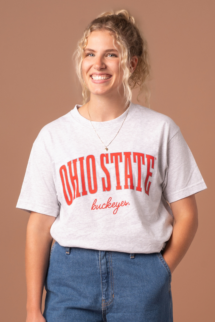 Step your game day style up a notch with a tee that’s as passionate about the Buckeyes as you are- a trendy tribute to Ohio State University athletics designed exclusively for the modern female fan who values both style and team spirit.