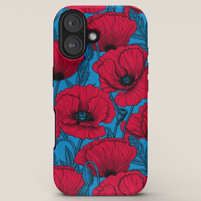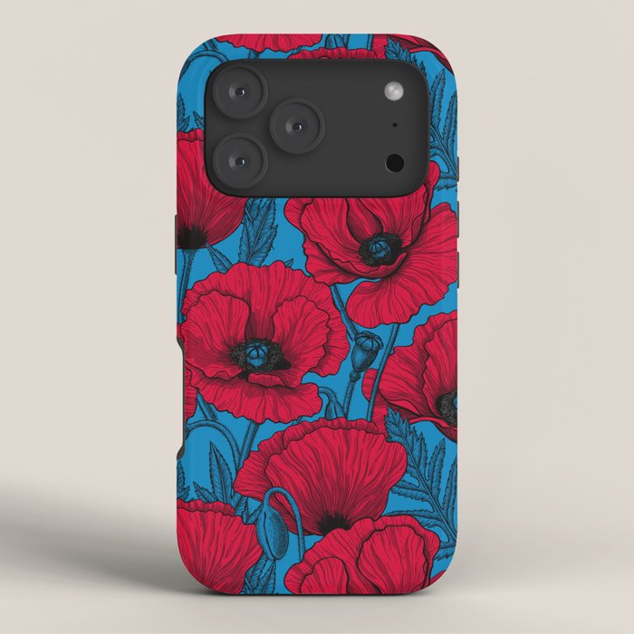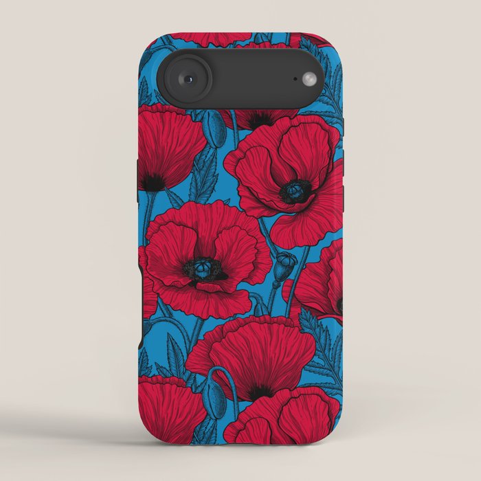 Be the first to review “Red poppy garden on blue iPhone Case”