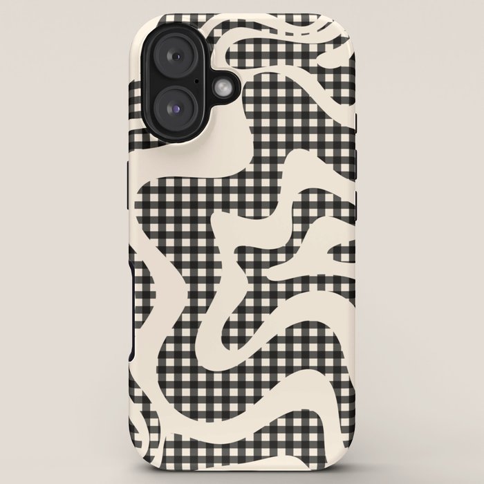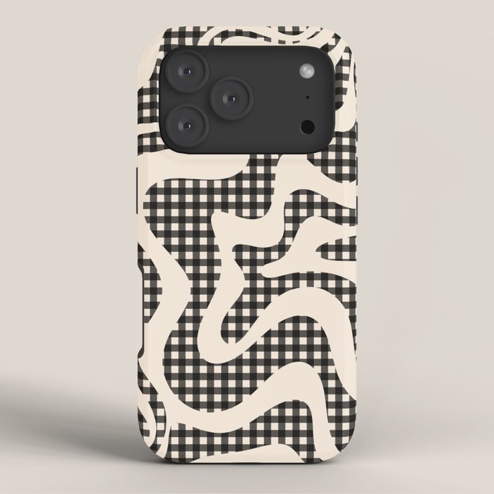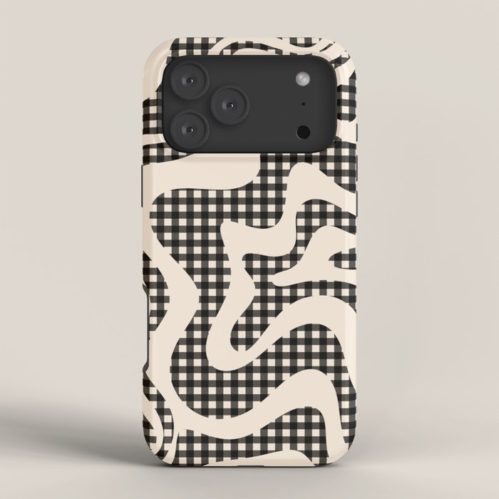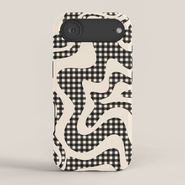 Be the first to review “Retro Liquid Swirl Abstract Gingham Check Pattern in Black and Almond Cream iPhone Case”