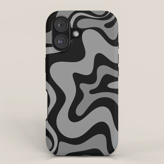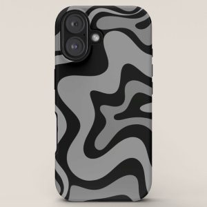 Be the first to review “Retro Liquid Swirl Abstract Pattern in Black and Gray iPhone Case”