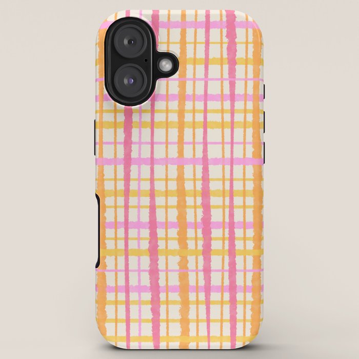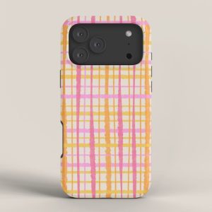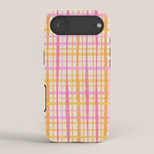 Be the first to review “Retro Picnic Plaid Painted Stripe Pattern Pink Yellow Cream iPhone Case”