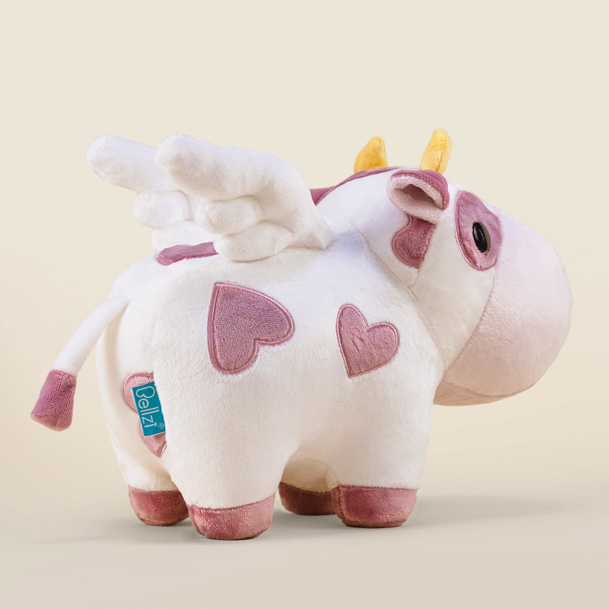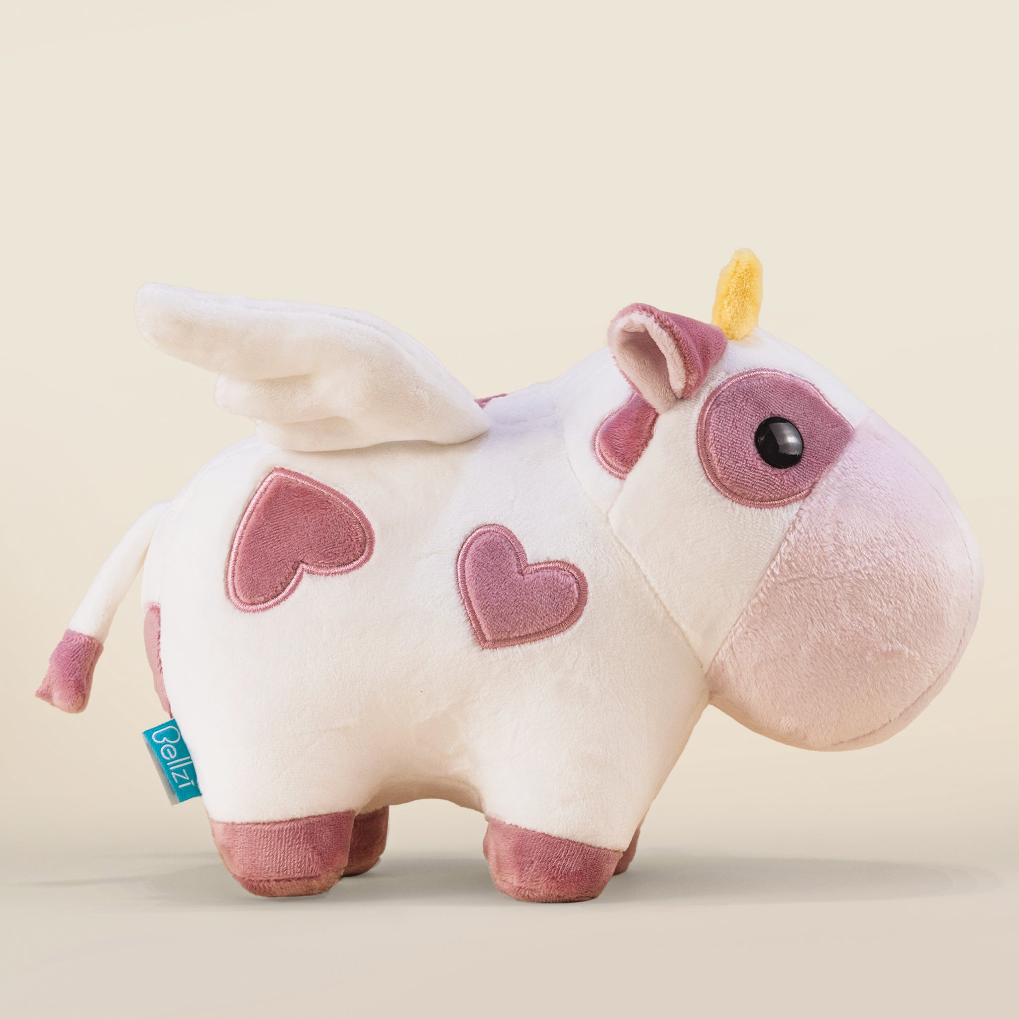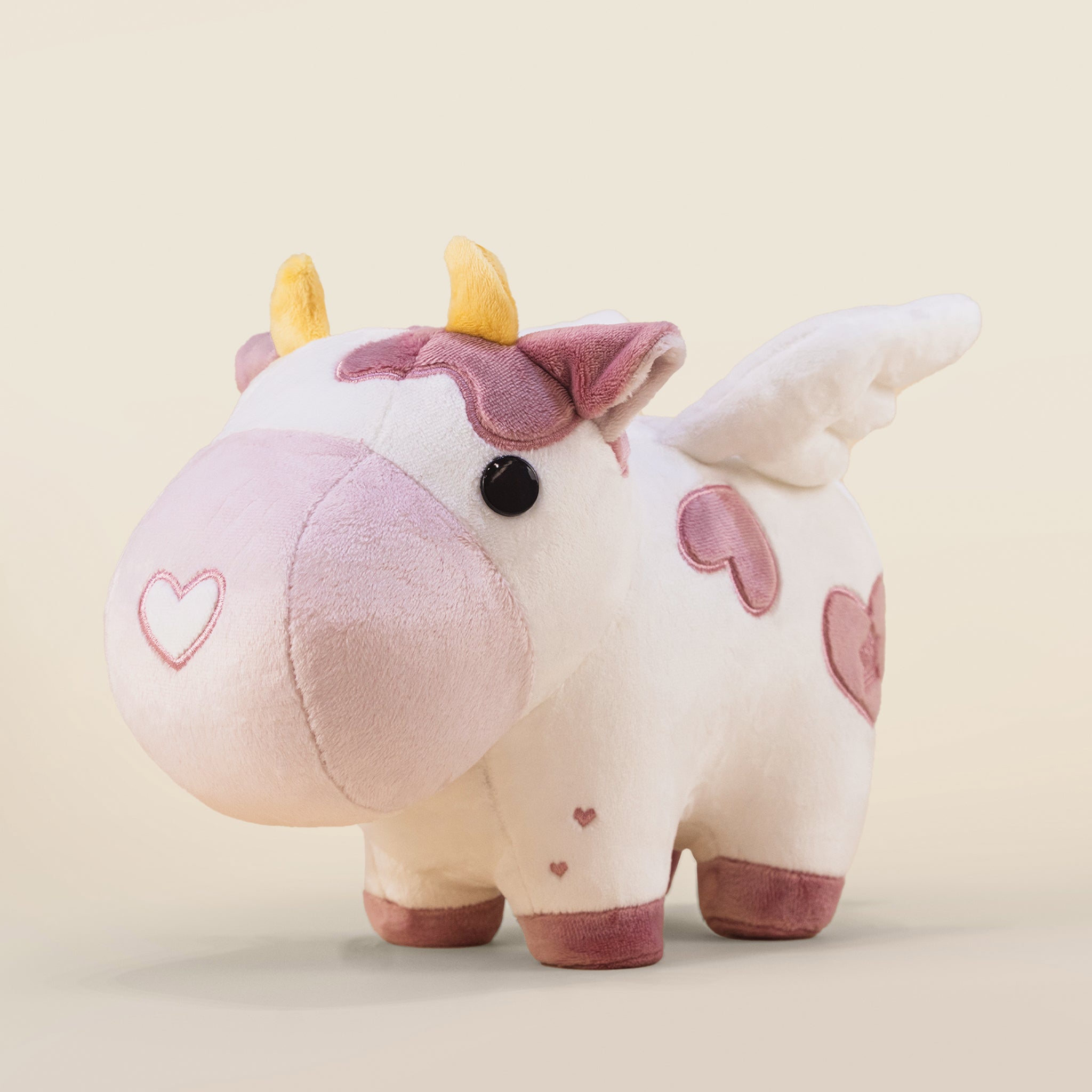 Valentine Mooi is not just a plushie; it’s a love-infused masterpiece! Adorned with embroidered minky heart patches in our delightful mauve, yellow horns, and white wings, Mooi radiates the romantic spirit and lifelike charm that make it the perfect embodiment of love in cow form. From its love-struck gaze to the heartwarming details, Valentine Mooi captures the essence of love in the most moo-ving way.